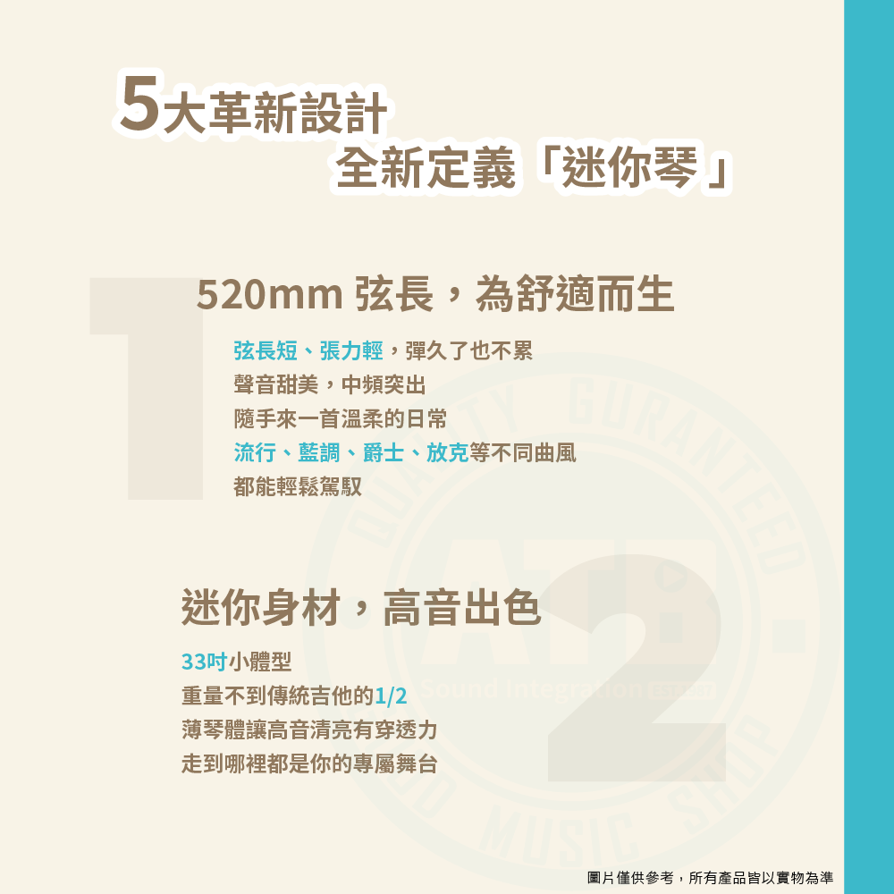 ◆33吋迷你琴身設計,高音清亮集中有穿透力