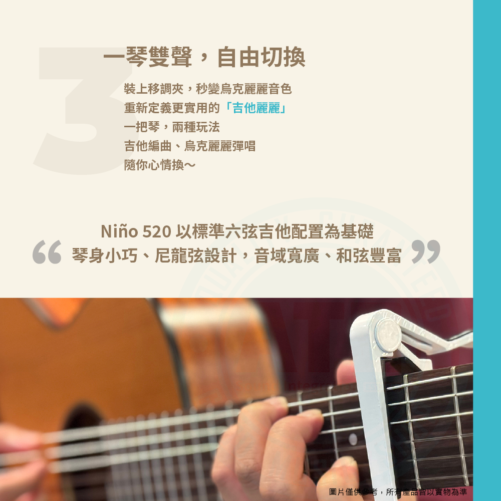 ◆移調夾切換音色,一琴兼具吉他與烏克麗麗