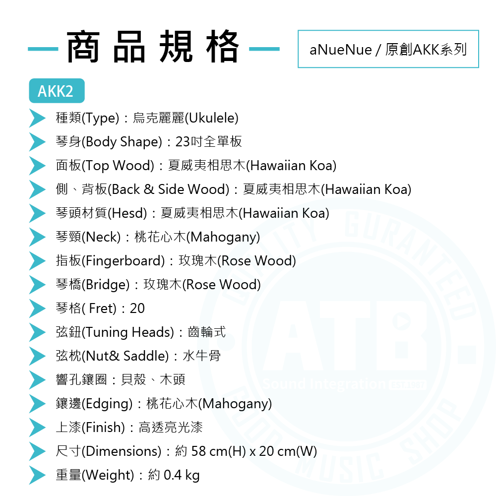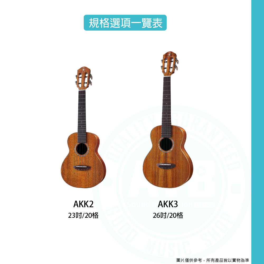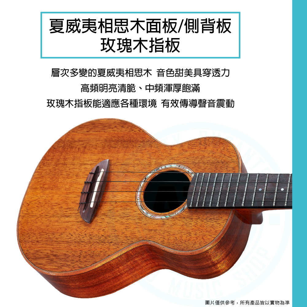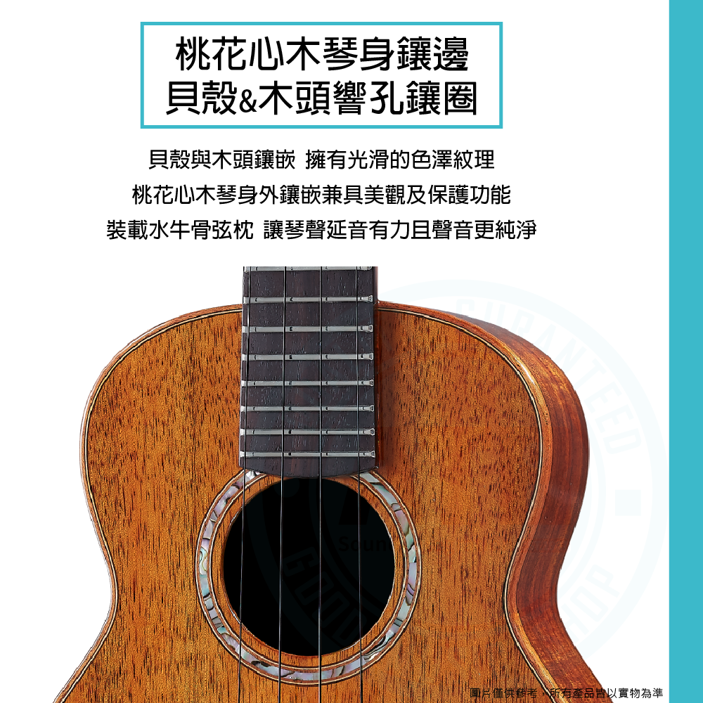 ◆ 23/26吋全單板,夏威夷相思木面板、側背板,聲音甜美具穿透力