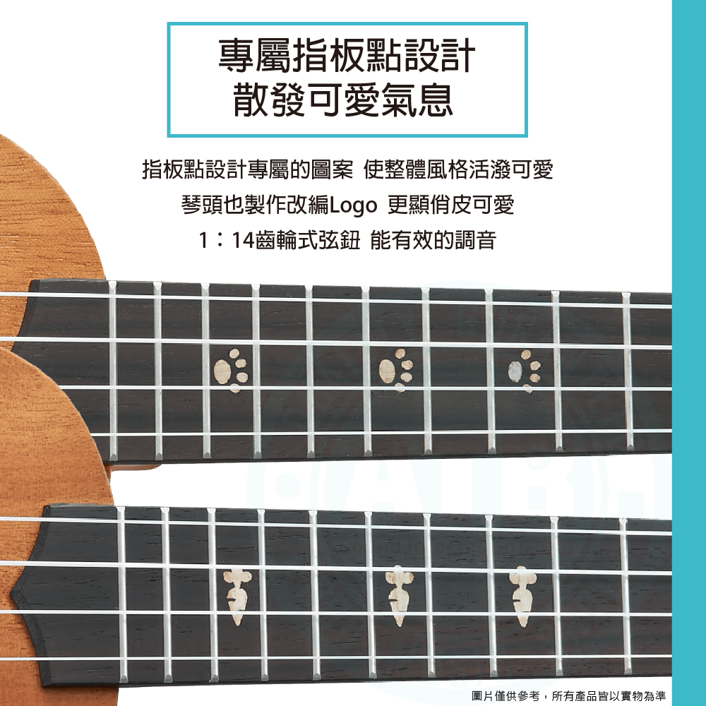 ◆ 琴身與琴頭雕刻插畫,搭配剪影響孔,獨特造型廣受大人小孩歡迎