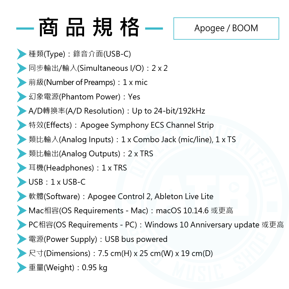 ◆ 內建Loopback功能,並擁有板載 DSP與傳奇Apogee音質