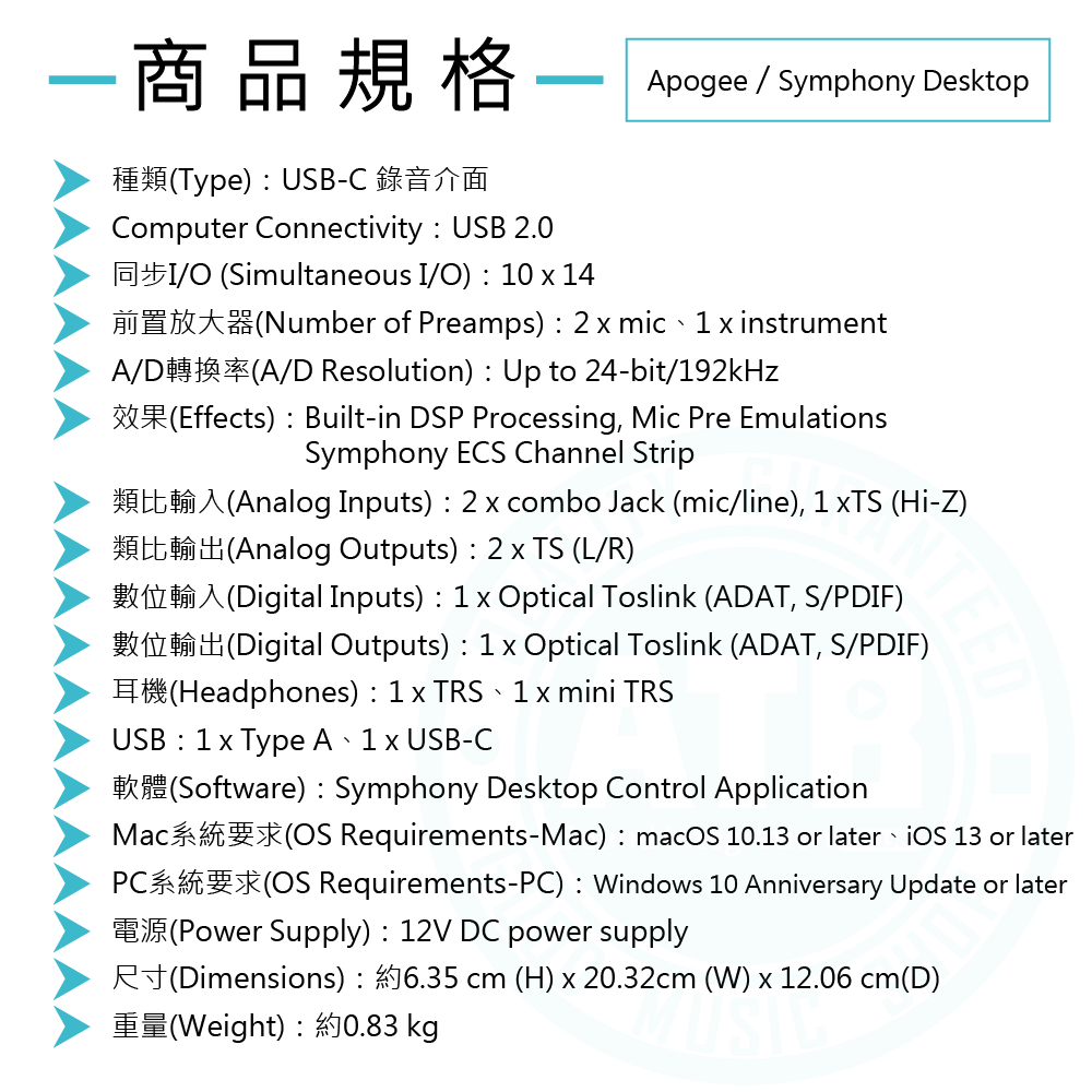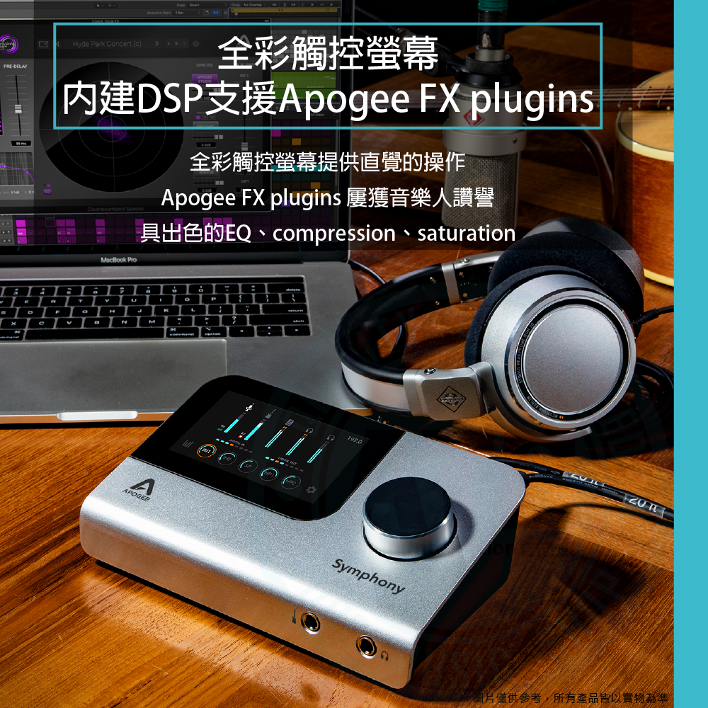 ◆ 全彩觸控螢幕,內建DSP支援Apogee FX plugins