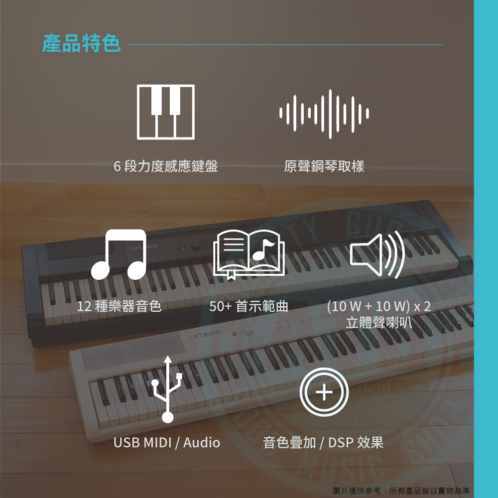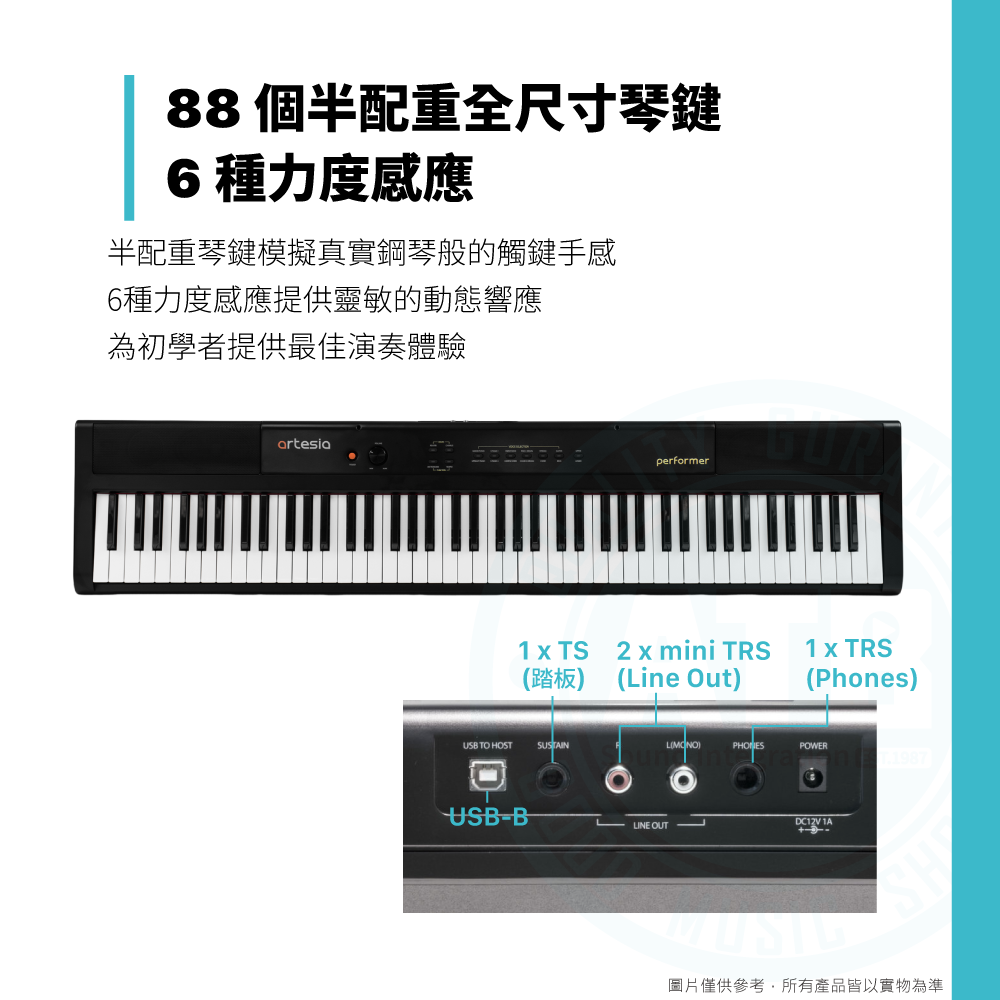 ◆ 88個半配重全尺寸琴鍵、6種力度感應