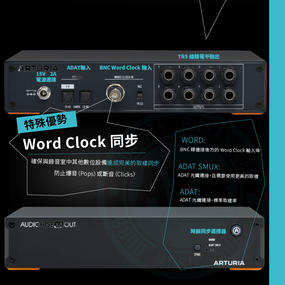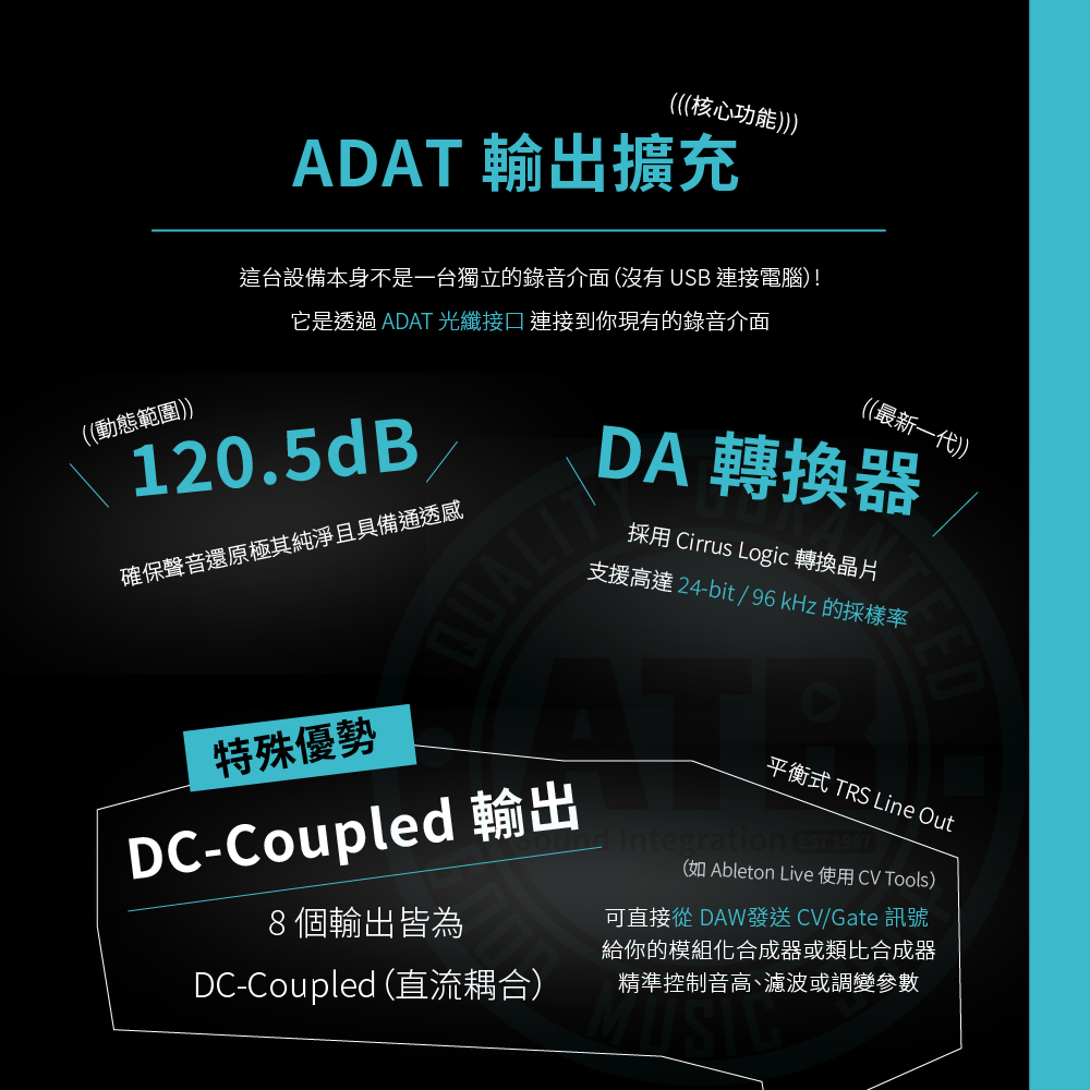 ◆兩組 ADAT 接口支援 S/MUX,高取樣率不掉軌