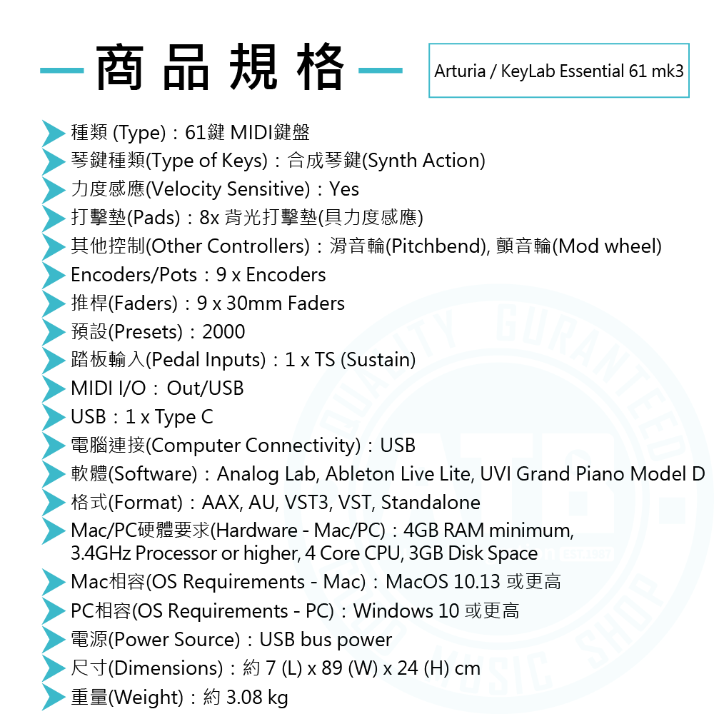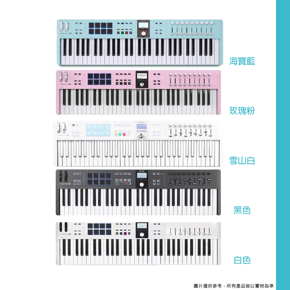 ◆ 61鍵MIDI主控鍵盤,採力度感應琴鍵,相容Mac/PC