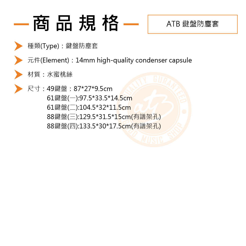 ◆ 88鍵防塵套具有貼心譜架孔設計