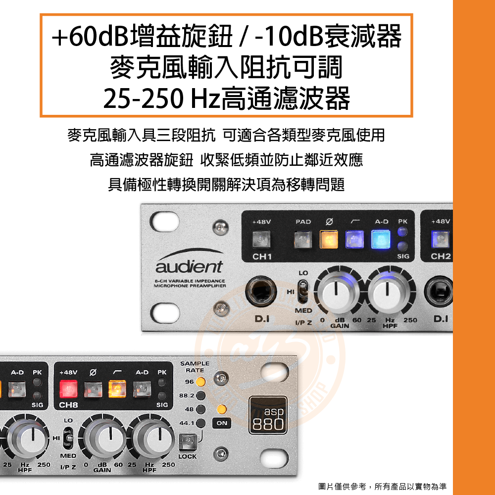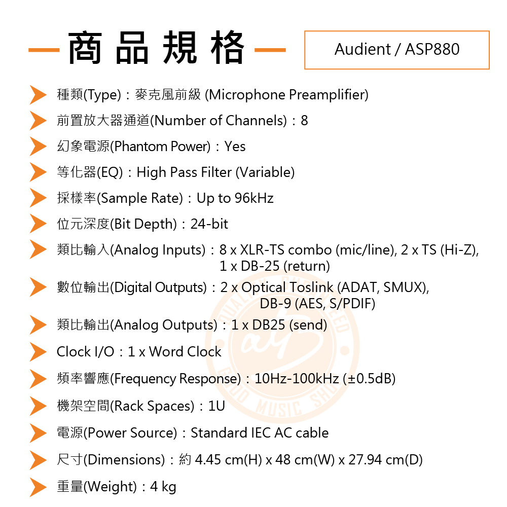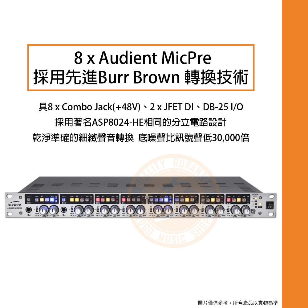 ◆ 8 x Audient MicPre,採用先進Burr Brown 轉換技術,擁有乾淨準確的細緻聲音