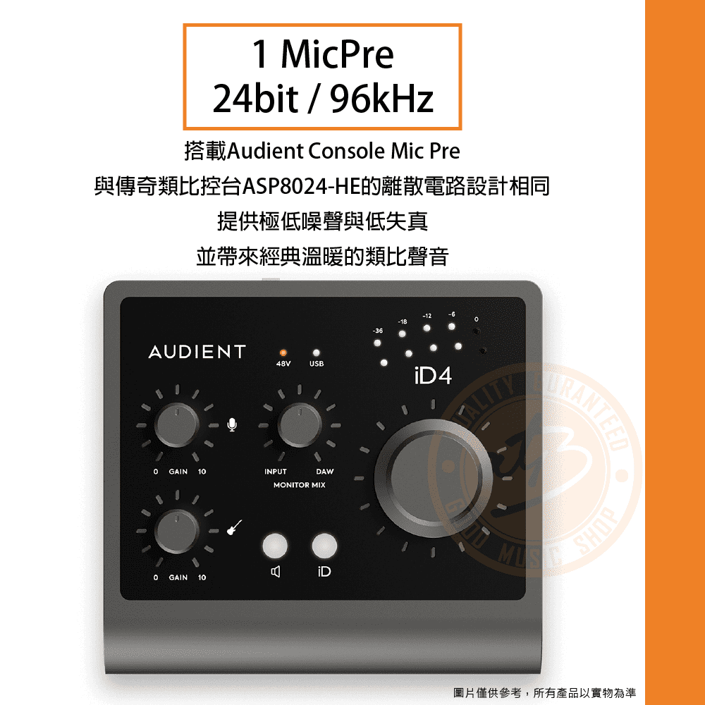 ◆ 1個 Mic Pre,與傳奇類比控台ASP8024-HE的離散電路設計相同