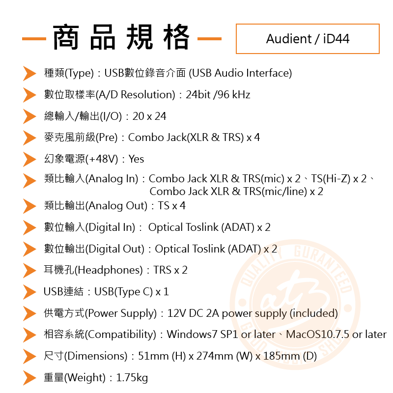 ◆24bit/96kHz 美國Burr Brown AD/DA高保真數位轉換技術