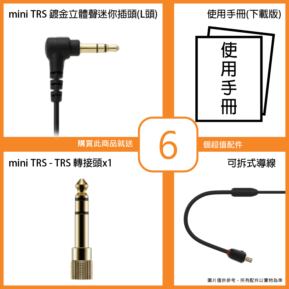 ◆ 貼合耳型、可拆式導線設計,具抗氧化鍍金接頭,適用於舞台監聽、練團