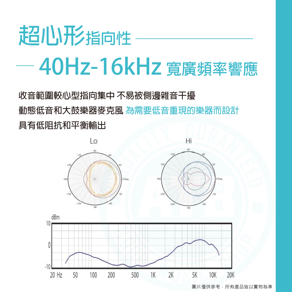◆ 適合低頻樂器,40Hz–16kHz 與 140dB SPL