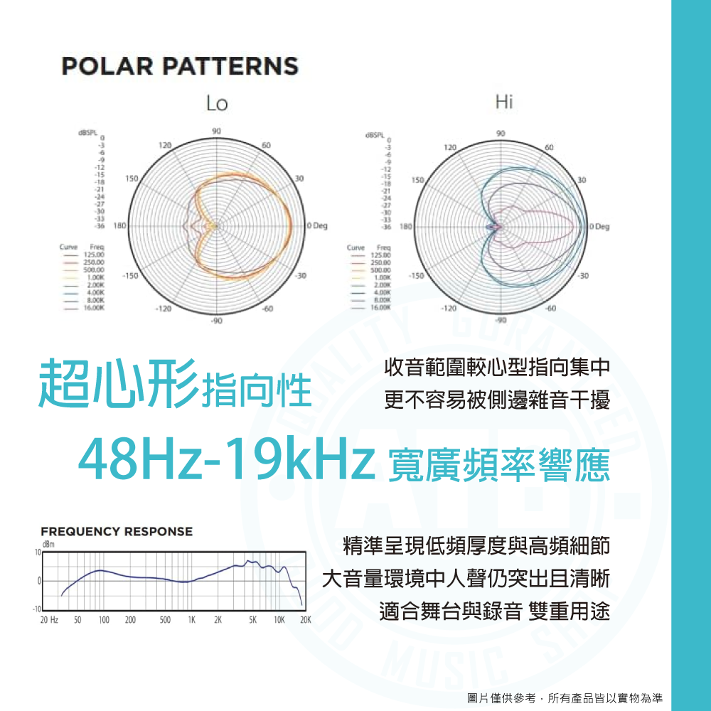 ◆ 極窄超心型指向,卓越軸外拒斥,有效隔離舞台雜音