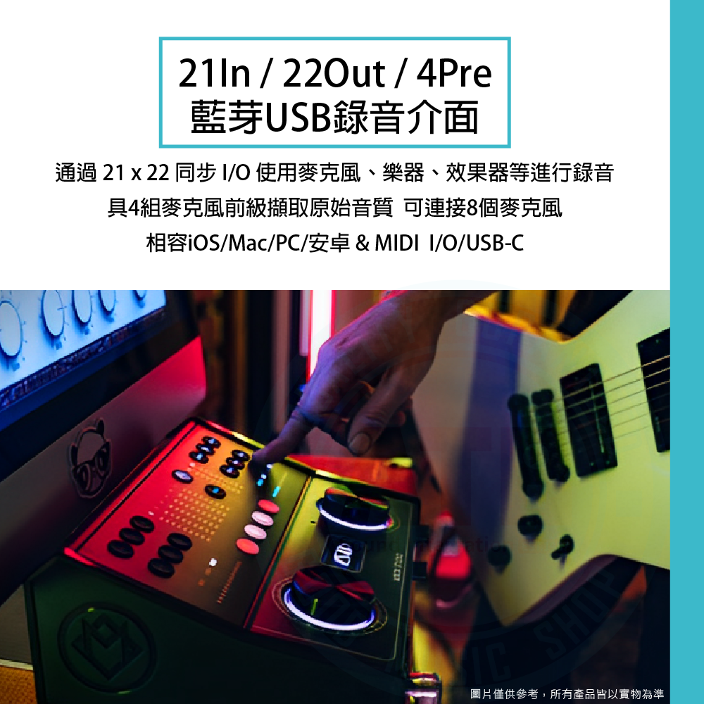 ◆21In / 22Out / 4Pre,USB-C錄音介面(iOS可用)