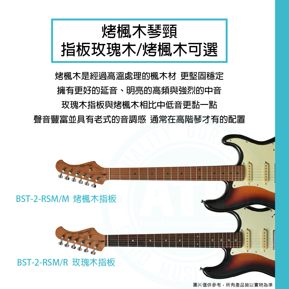 ◆ 烤楓木琴頸,玫瑰木/烤楓木指板可選,聲音豐富並具有老式的音調感