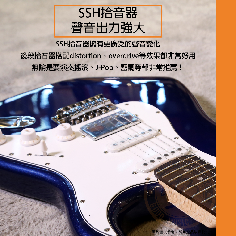 ◆ SSH拾音器,聲音出力強大,無論要演奏搖滾、J-Pop、藍調等都非常推薦