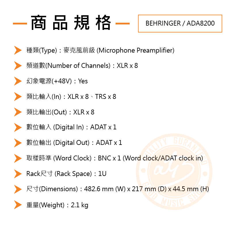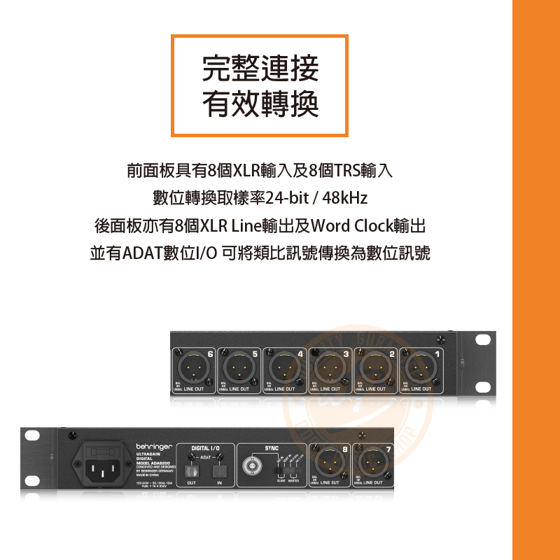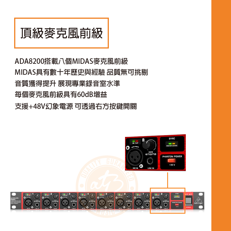 ◆使用8個頂級MIDAS麥克風前級,支援幻象電源