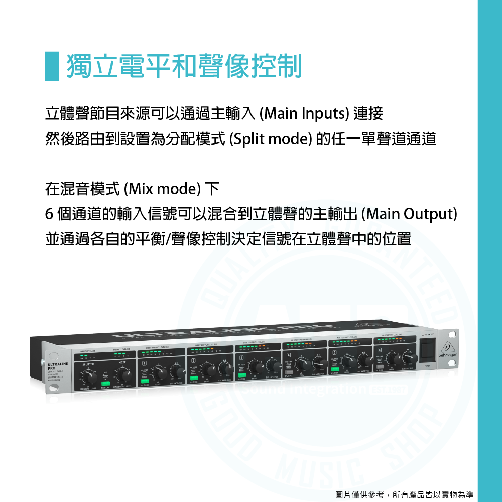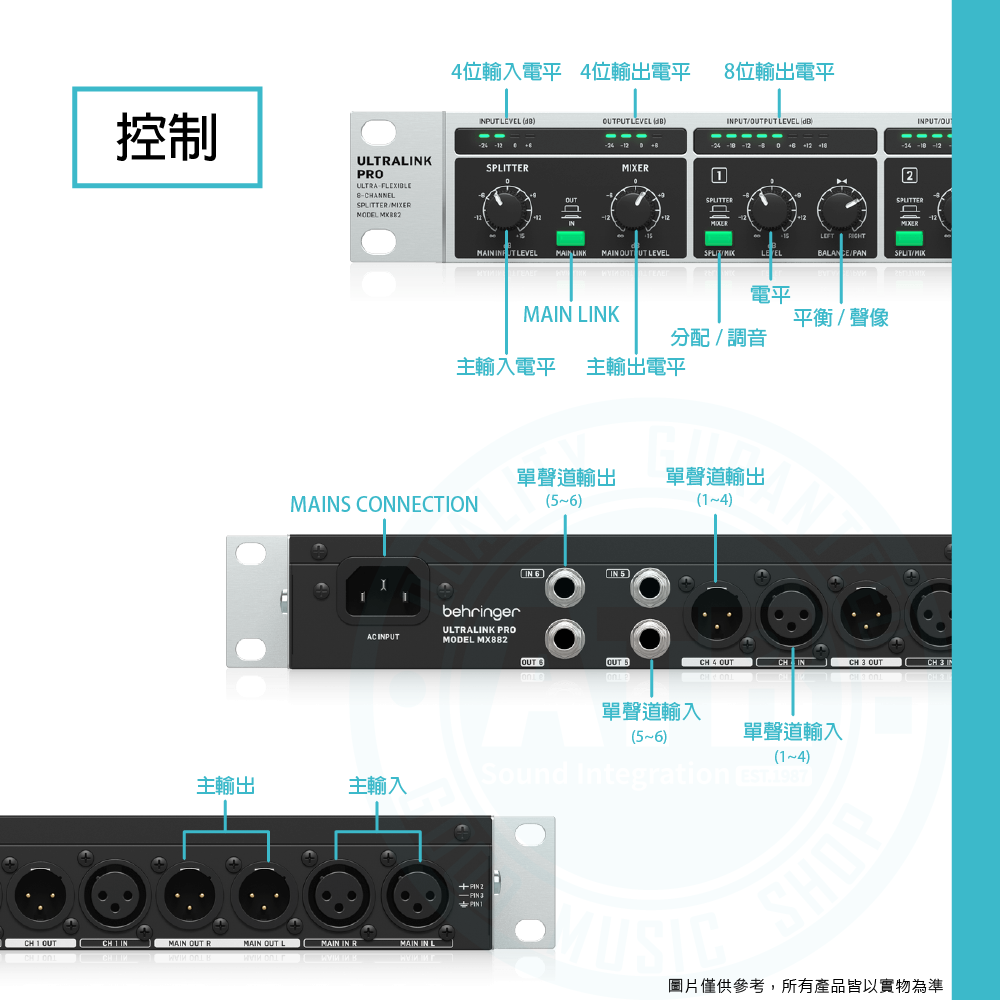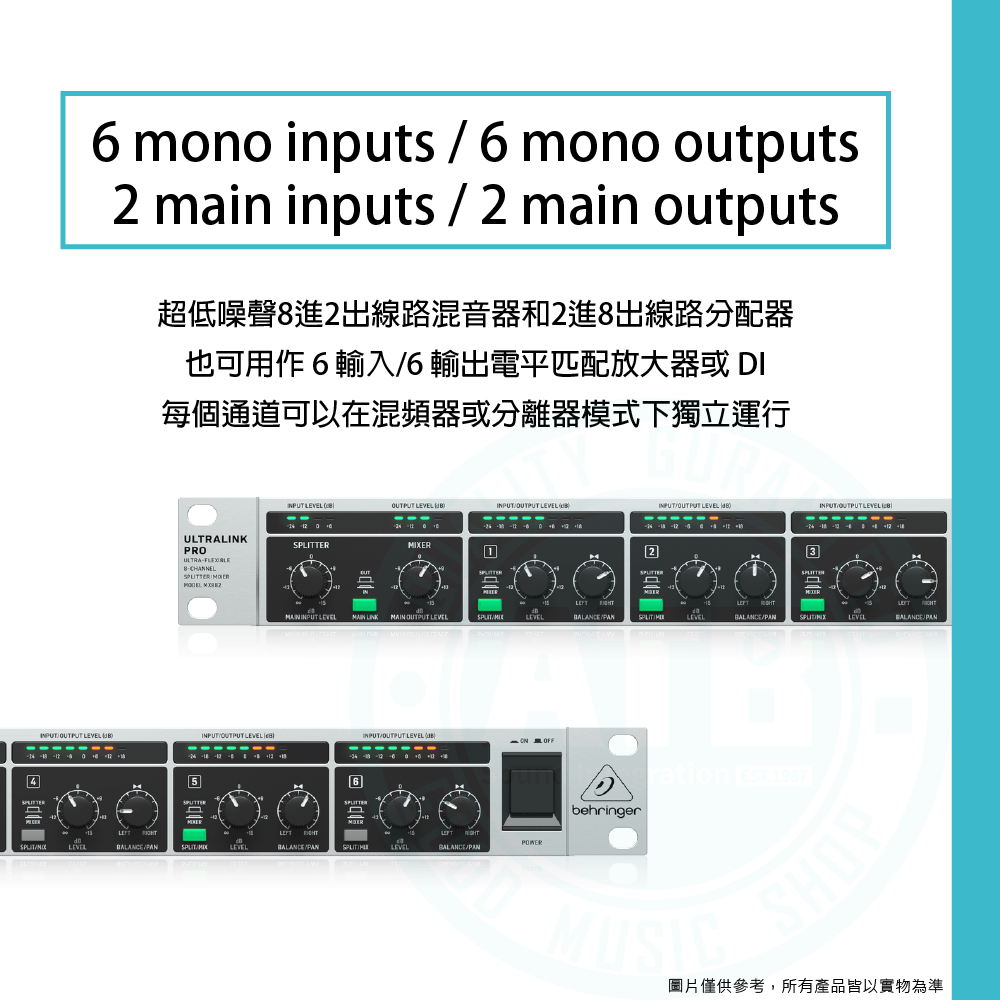 ◆6 個單聲道輸入、6 個單聲道輸出、2 個主輸入和 2 個主輸出