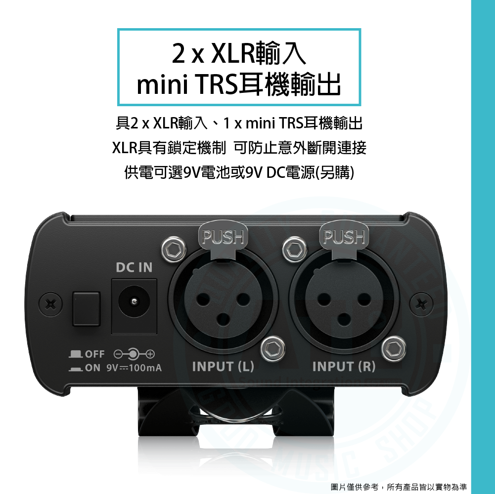 ◆ 2 x XLR輸入、mini TRS耳機輸出