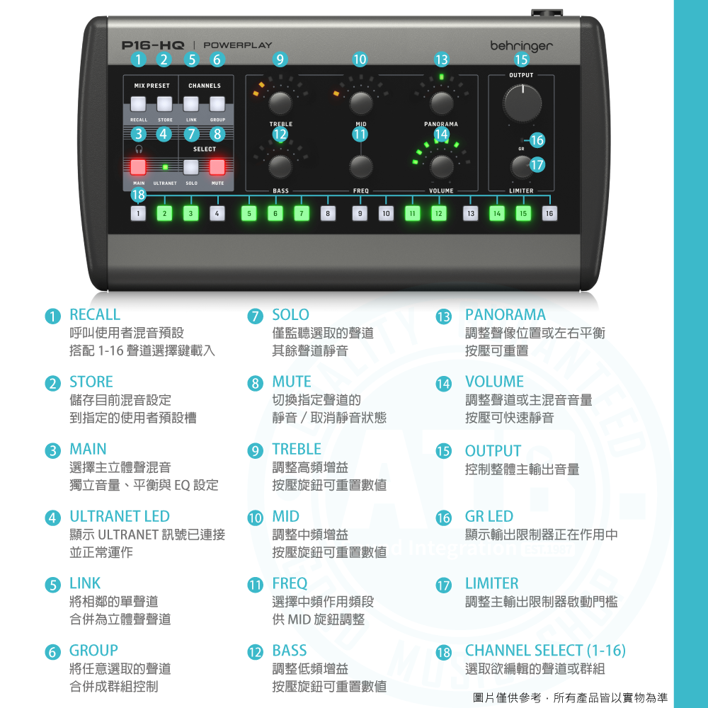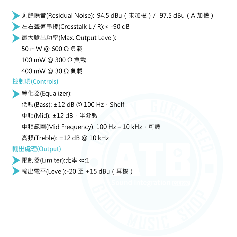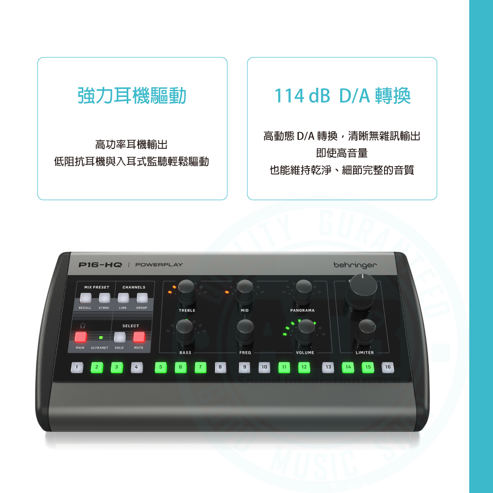 ◆完整 EQ 與限制器,每軌音色可調並兼顧聽力保護