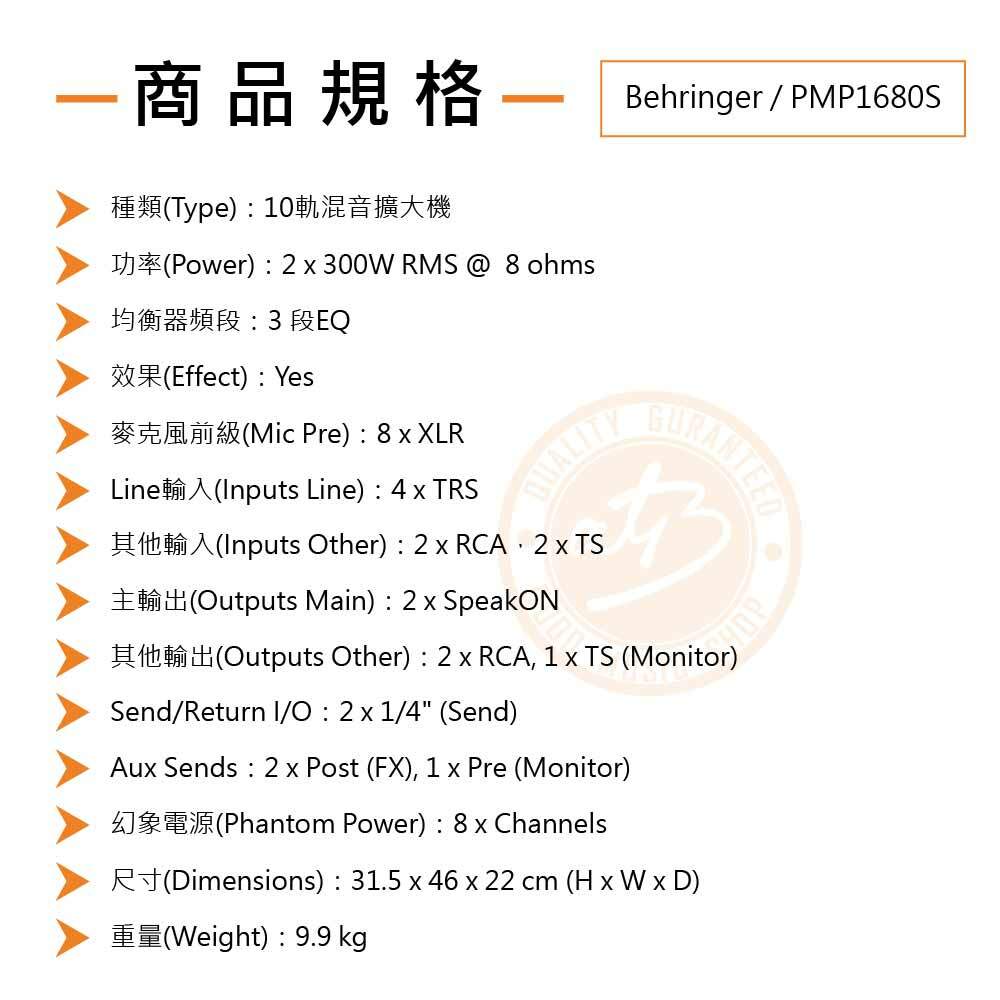 ◆ 10In / 8Pre / 3Aux、橋接模式1600W、D類放大