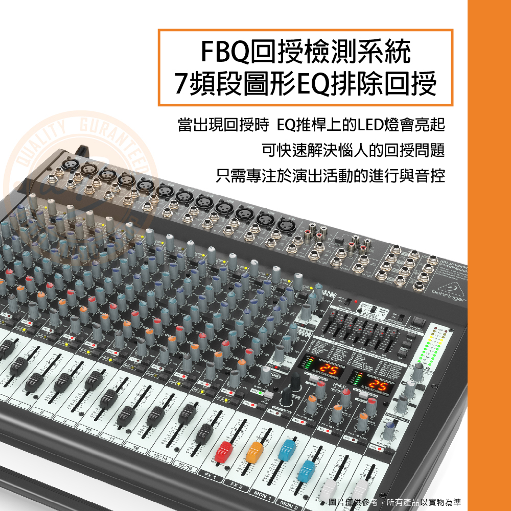 ◆ FBQ回授檢測系統,透過7頻段圖形EQ排除回授,讓你專注於音控及演出