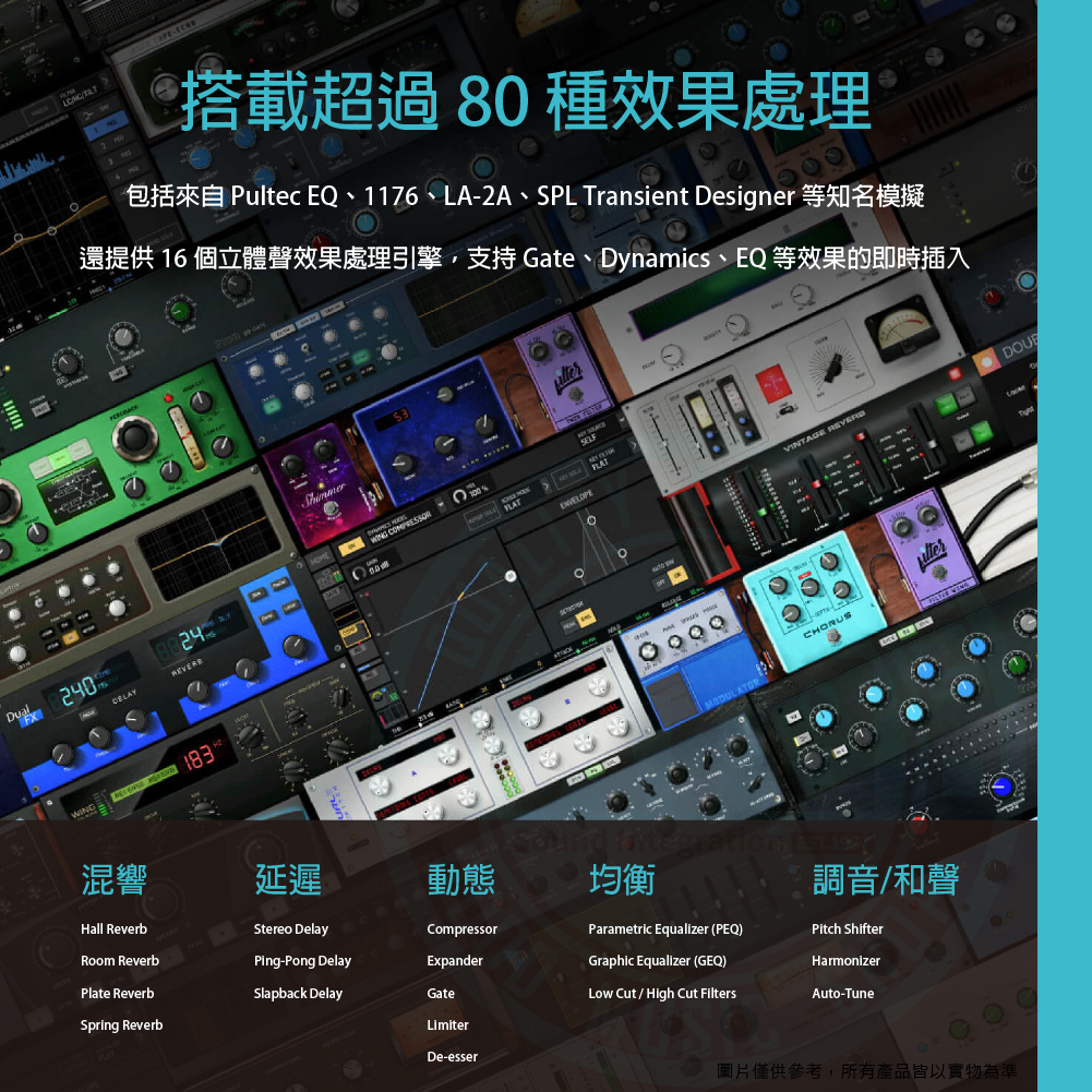 ◆ 內建效果處理 提供超過 80 種效果處理選項