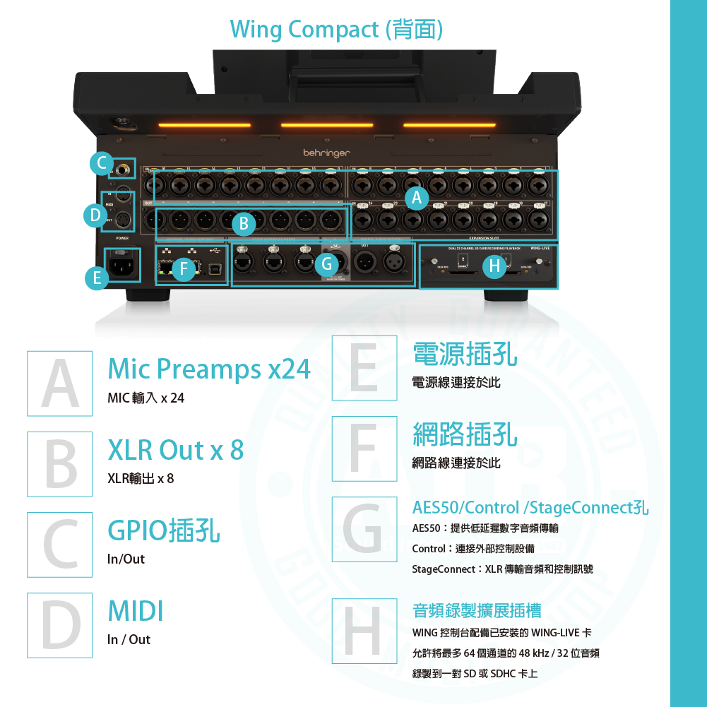 ◆ 強大連接性 支援 Dante、AES50 等數位連接協議