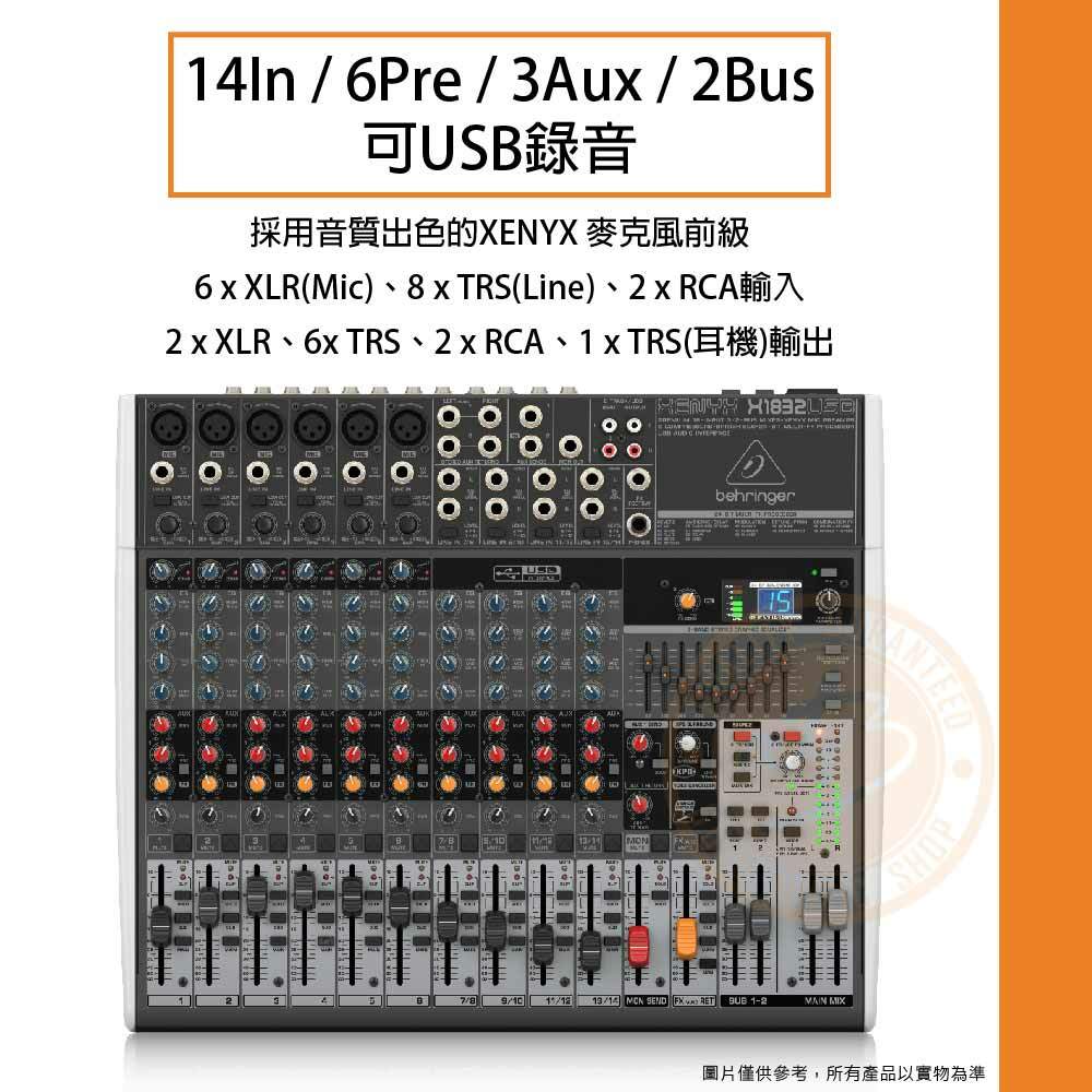 ◆ 14In/6Pre/3Aux/2Bus,可USB錄音