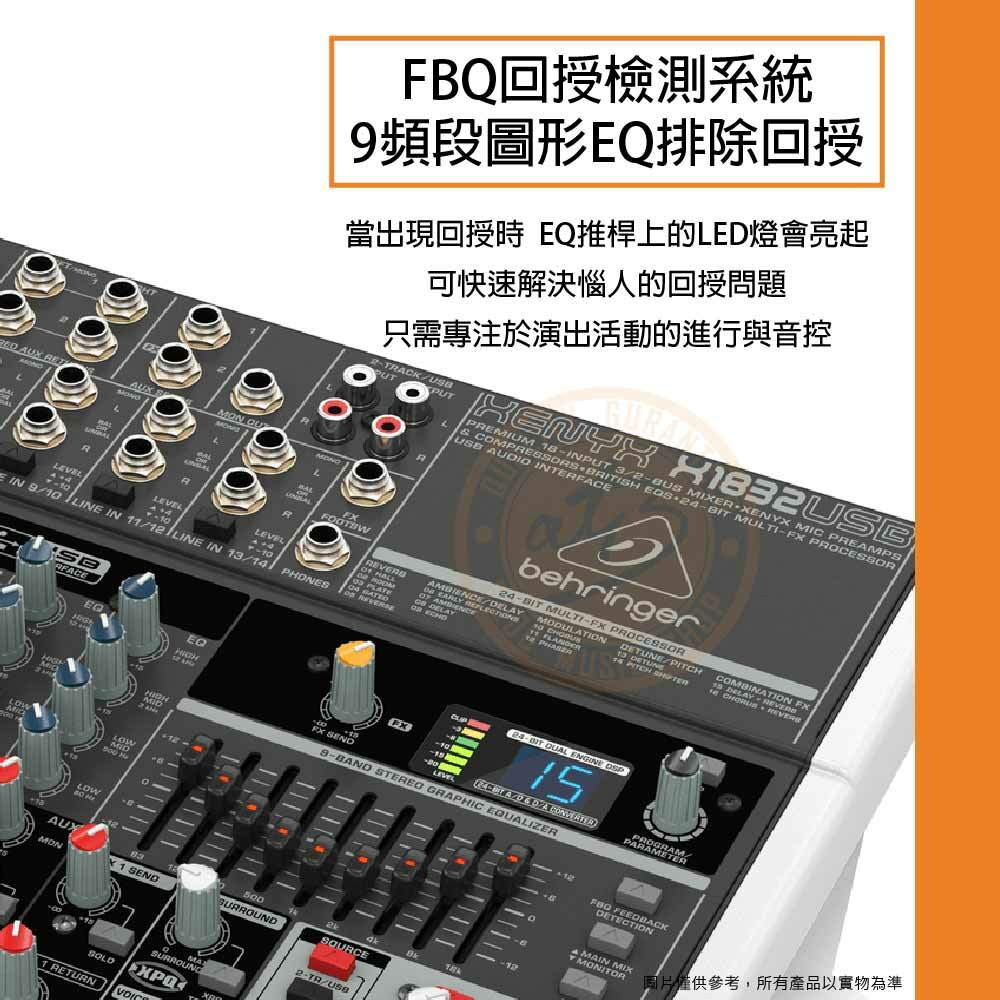 ◆ FBQ回授檢測系統,可透過9頻段圖形EQ排除回授