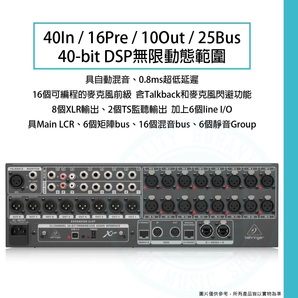 ◆ 40In / 16Pre / 10Out / 25Bus,40-bit DSP無限動態範圍
