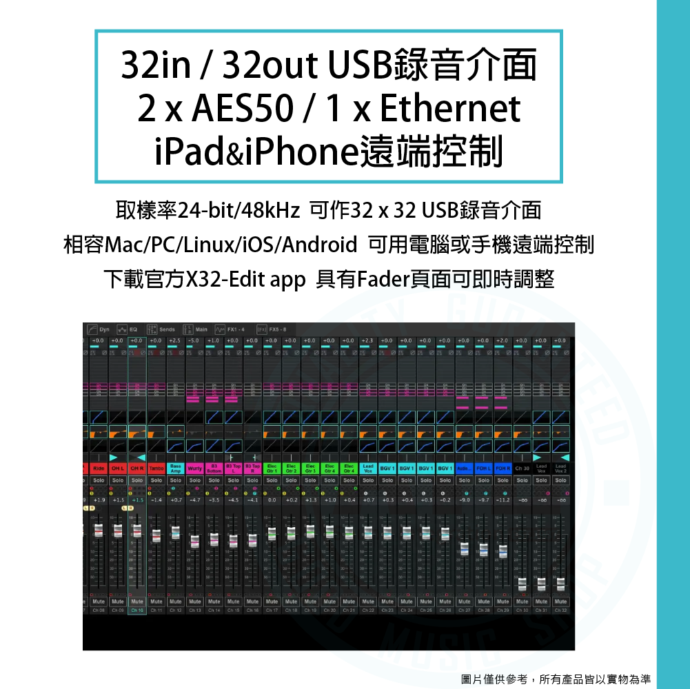 ◆ 2 x AES50、1 x Ethernet,可作32in / 32out USB錄音介面