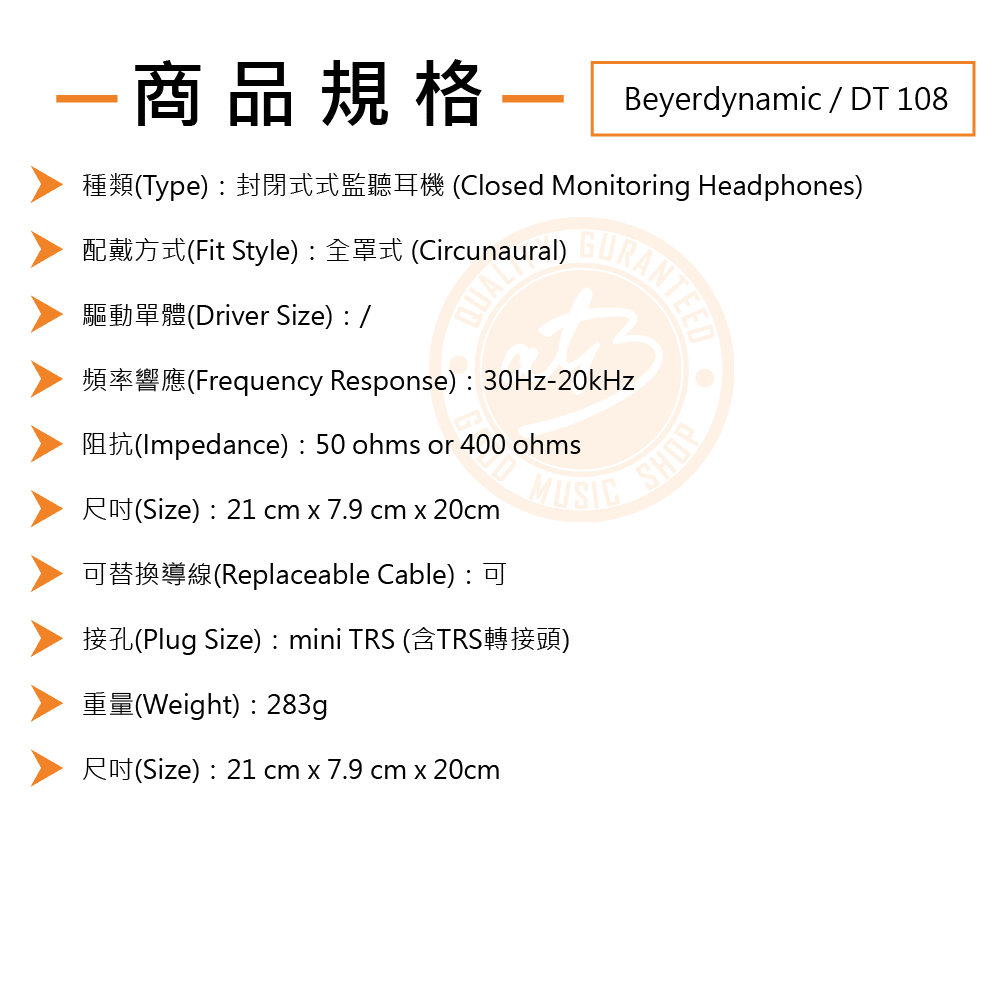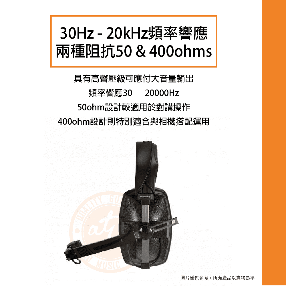 ◆ 頻率響應30 – 20000Hz,50ohm設計較適用於對講操作,400ohm設計則特別適合與相機搭配運用