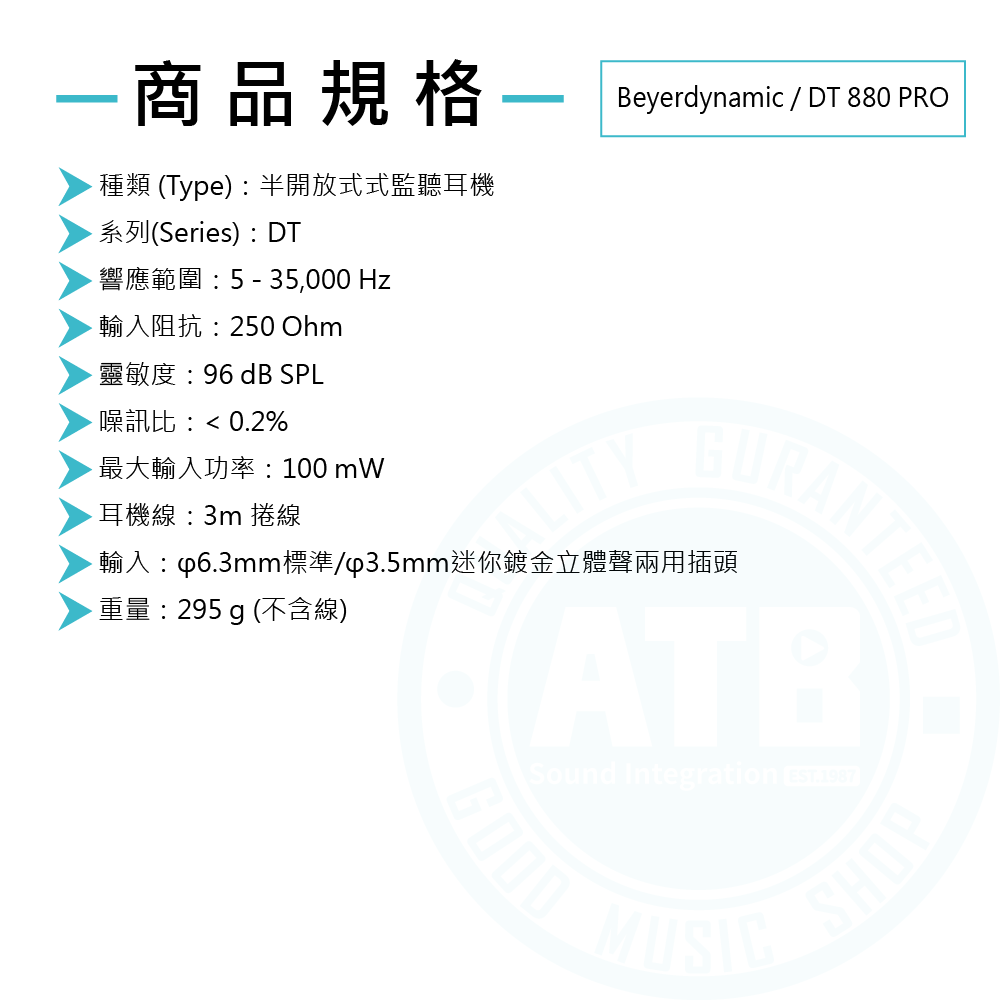 ◆ 阻抗250ohm、頻率響應 5Hz-35kHz、捲式耳機線