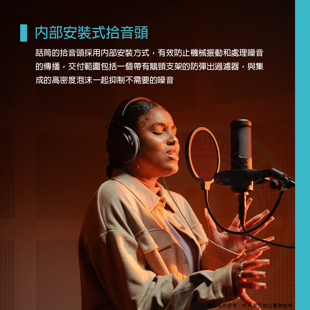 ◆麥克風的大振膜提供了豐富的低頻響應和細膩的高頻細節