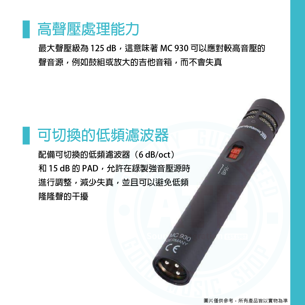 ◆最大聲壓級為 125 dB可以應對較高音壓的聲音源