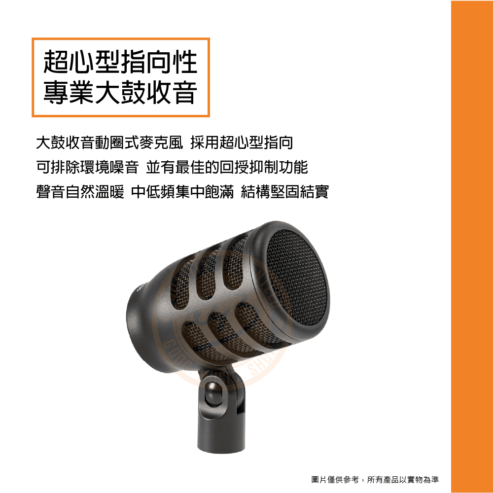 ◆ 超心型指向大鼓收音動圈式麥克風,可排除環境噪音、抑制回授