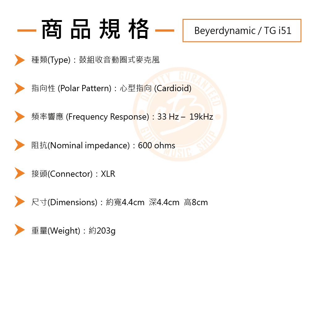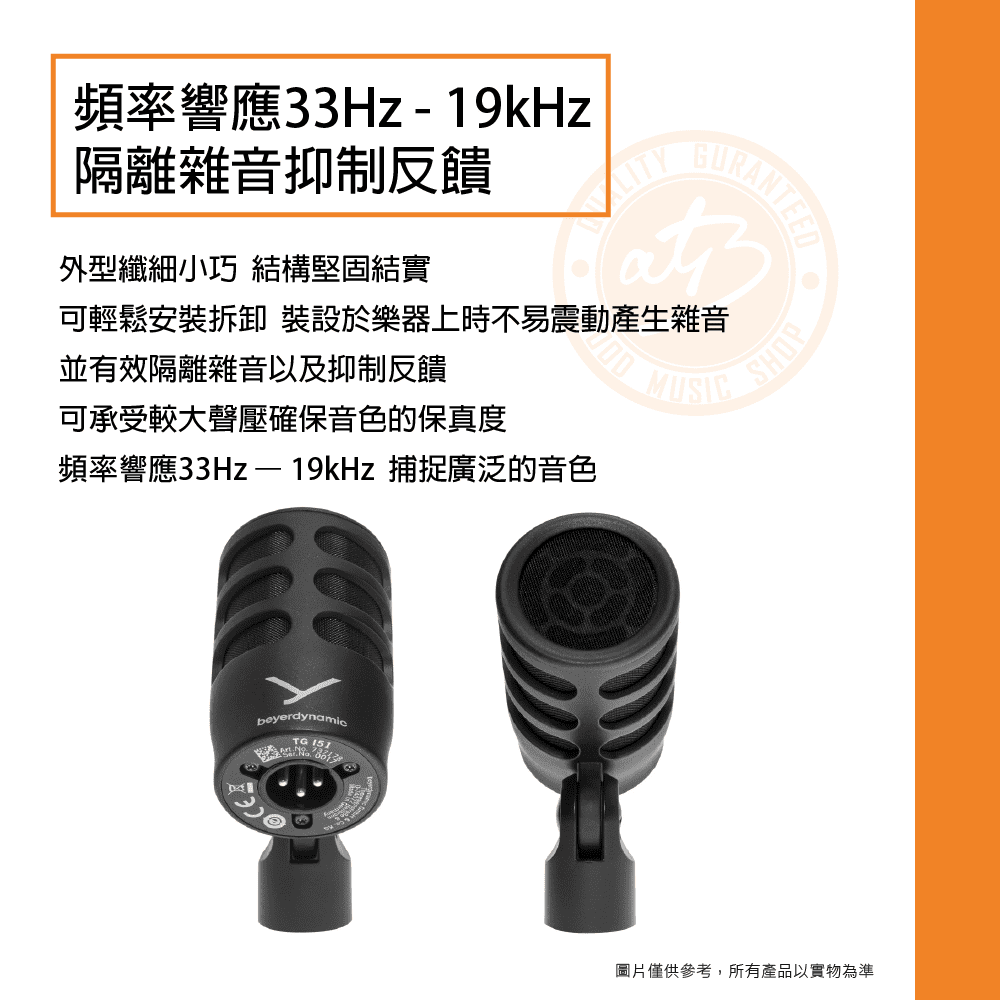 ◆ 動圈式心型指向麥克風,頻率響應33Hz – 19kHz