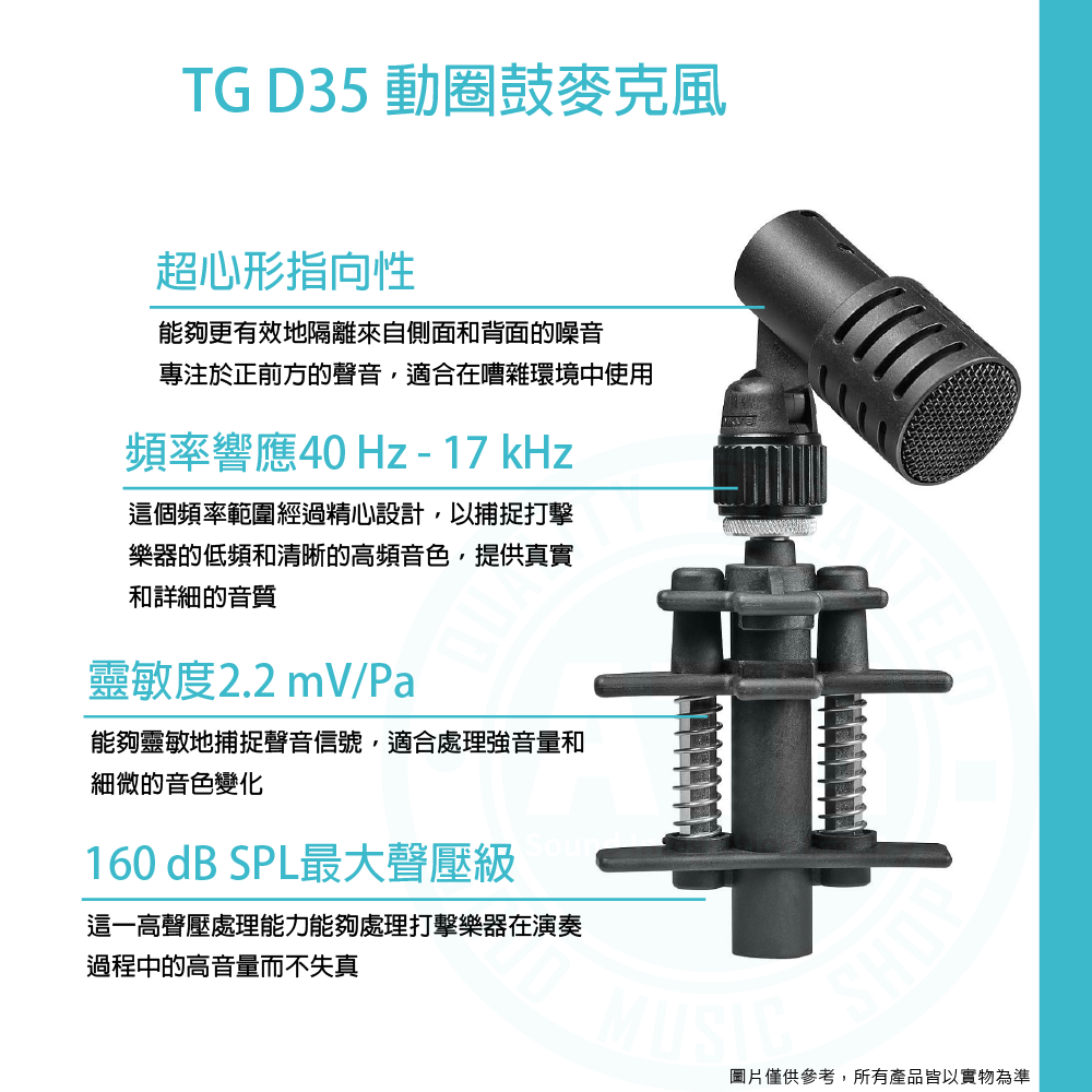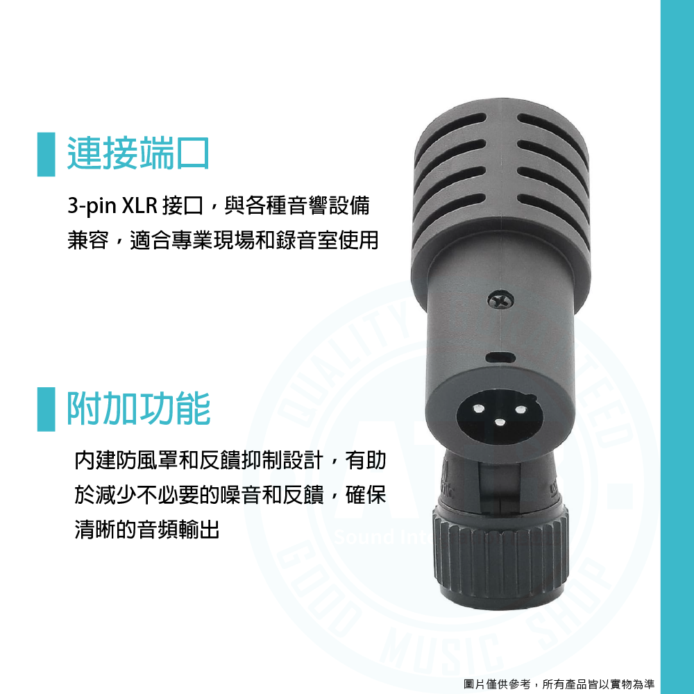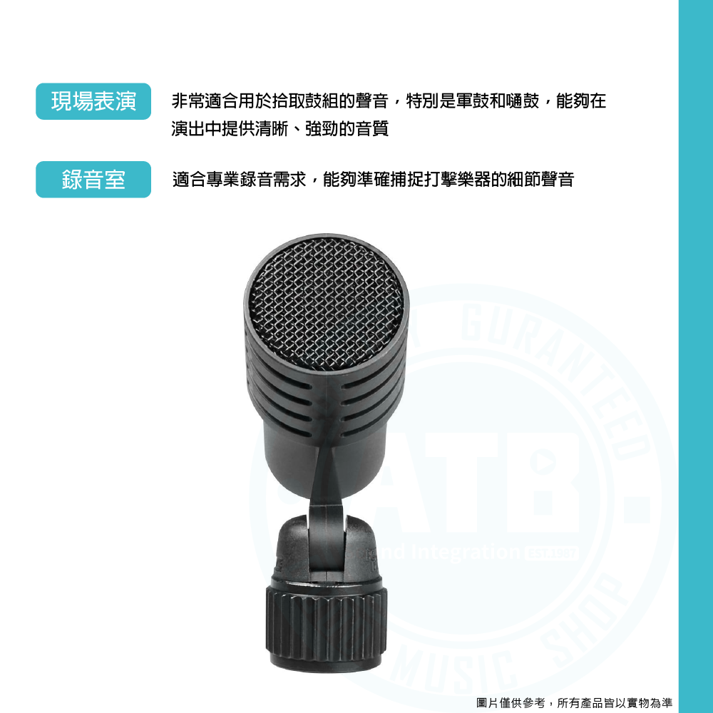 ◆ 用於鼓、打擊樂器和其他樂器拾音的專業麥克風