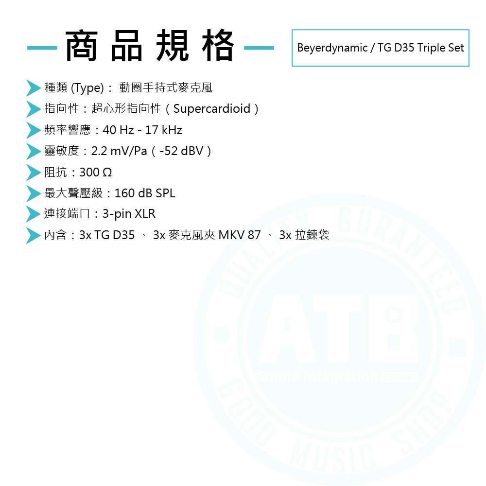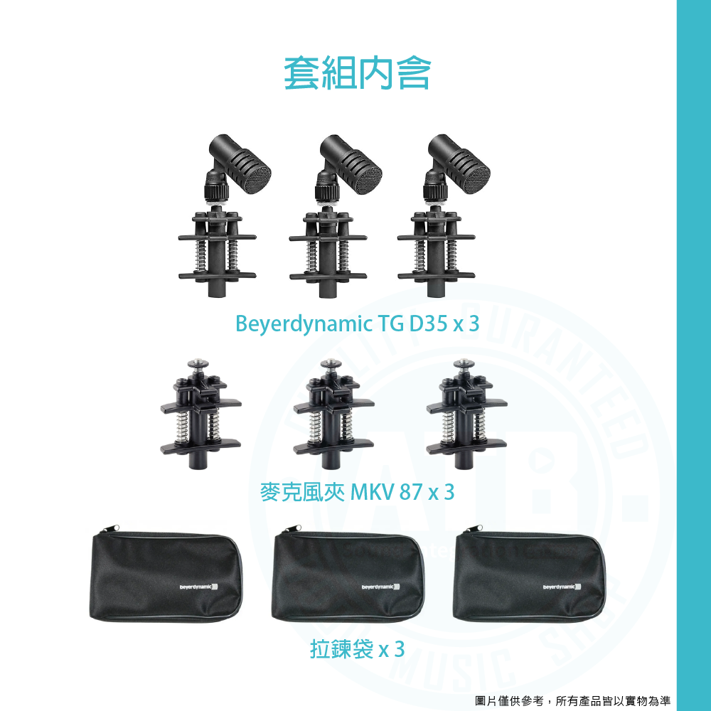 ◆ 內含3x TG D35 、 3x 麥克風夾 MKV 87、3x 拉鍊袋