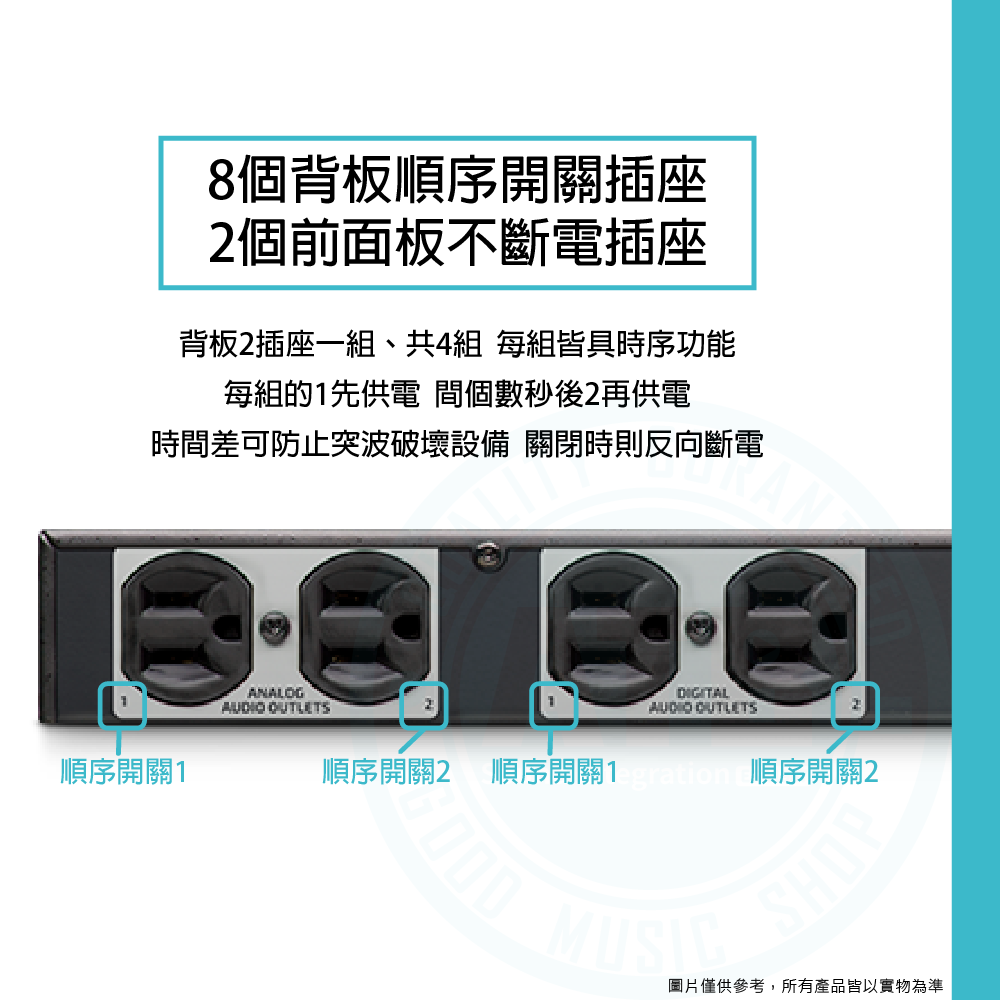 ◆8個背板順序開關插座、2個前面板不斷電插座