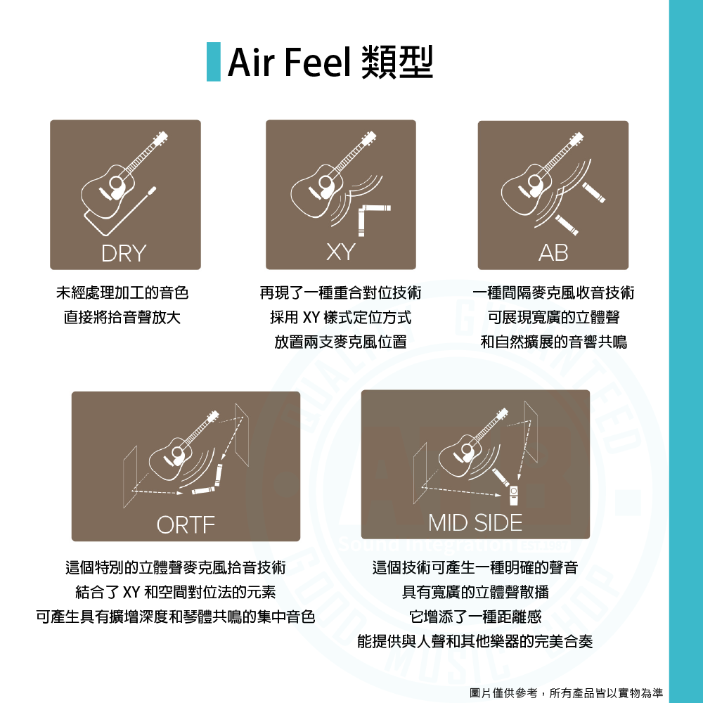 ◆五種Air Feel 設定:Dry、XY、AB、ORTF 和Mid-Side