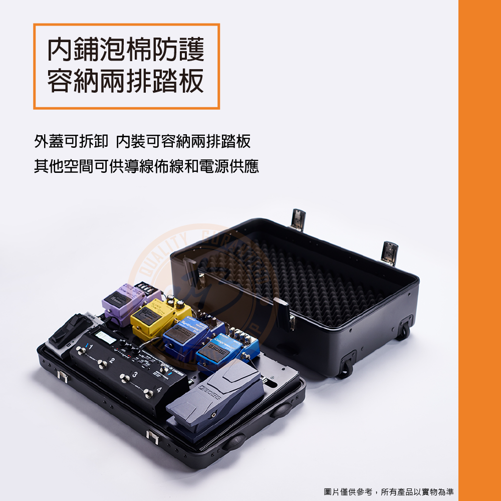 ◆ 內鋪泡棉防護,內裝可容納兩排踏板,其他空間可供導線佈線和電源供應