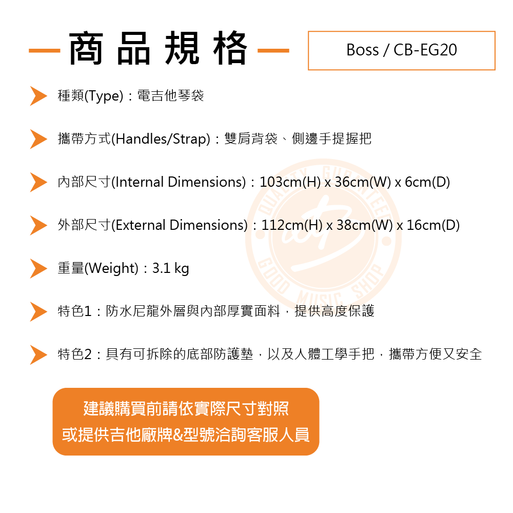 ◆ 底部具有可拆除式的防護墊,可隨吉他大小拆裝