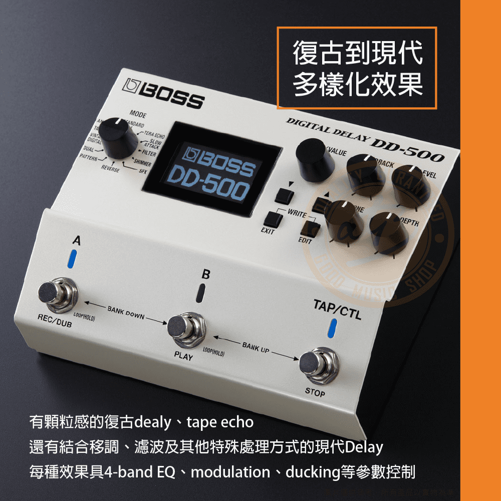 ◆ 12種獨特Delay模式,最長延遲時間10秒,32-bit / 96kHz錄音室等級取樣率
