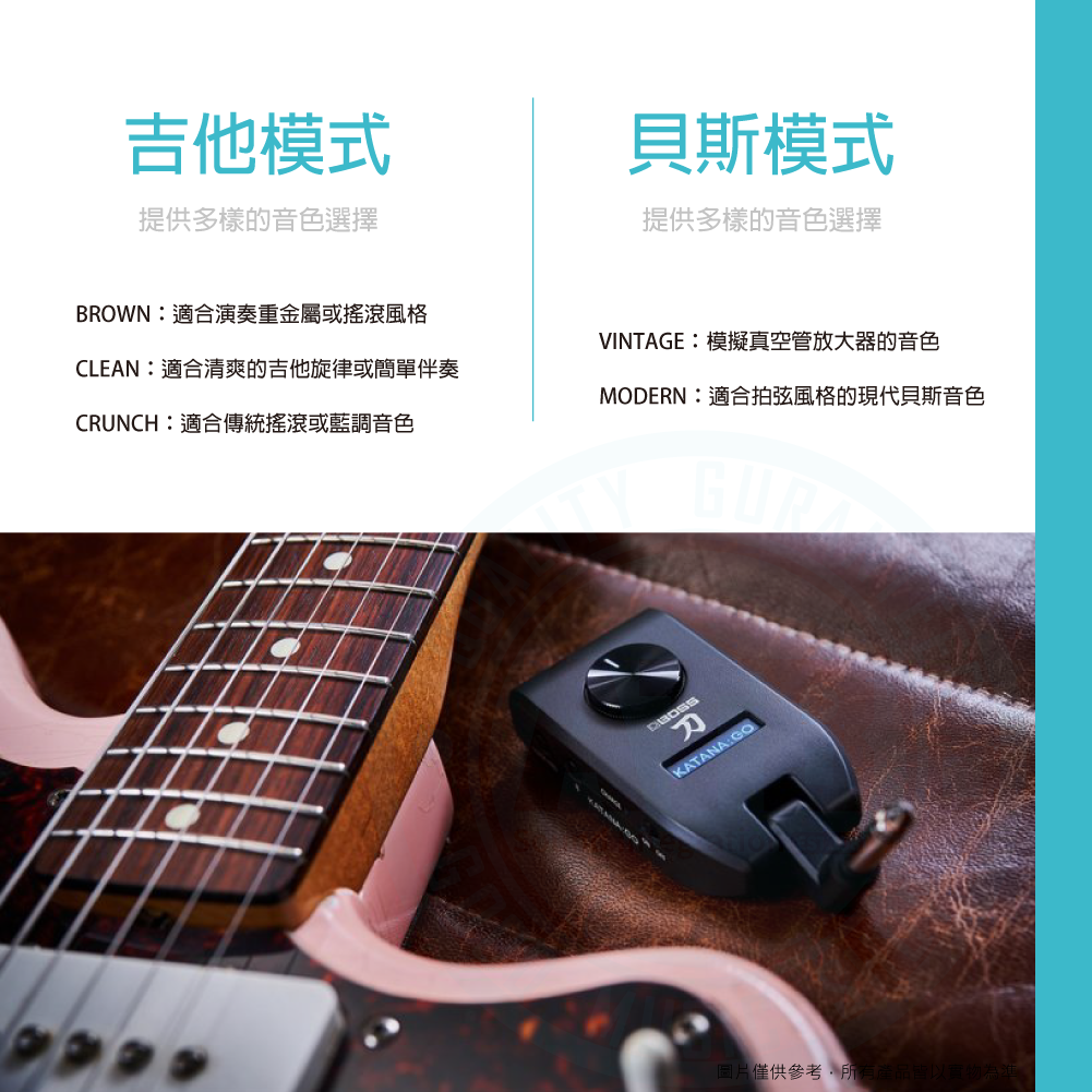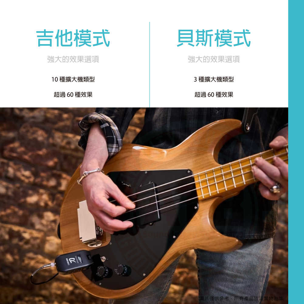 ◆雙模式支援,內建吉他10款與貝斯3款模式共60+效果