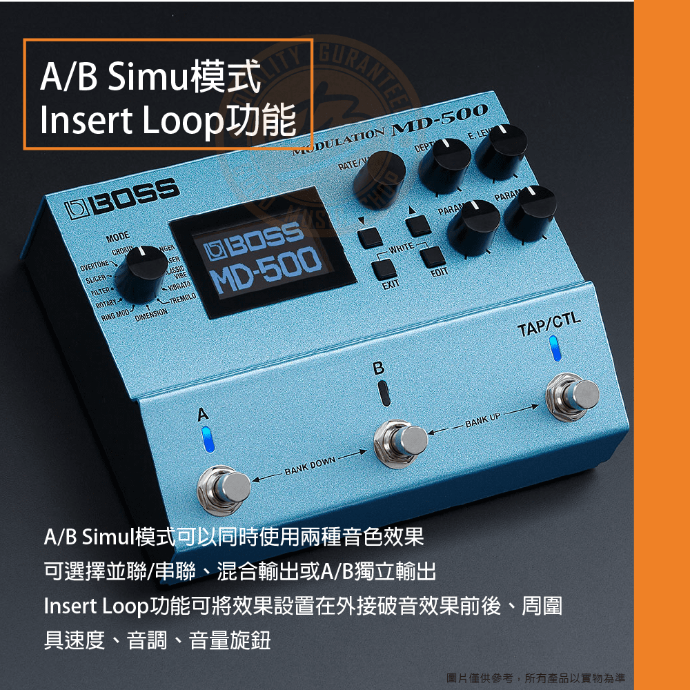 ◆ A/B Simul模式可以同時使用兩種音色效果,可選擇並聯/串聯、混合輸出或A/B獨立輸出