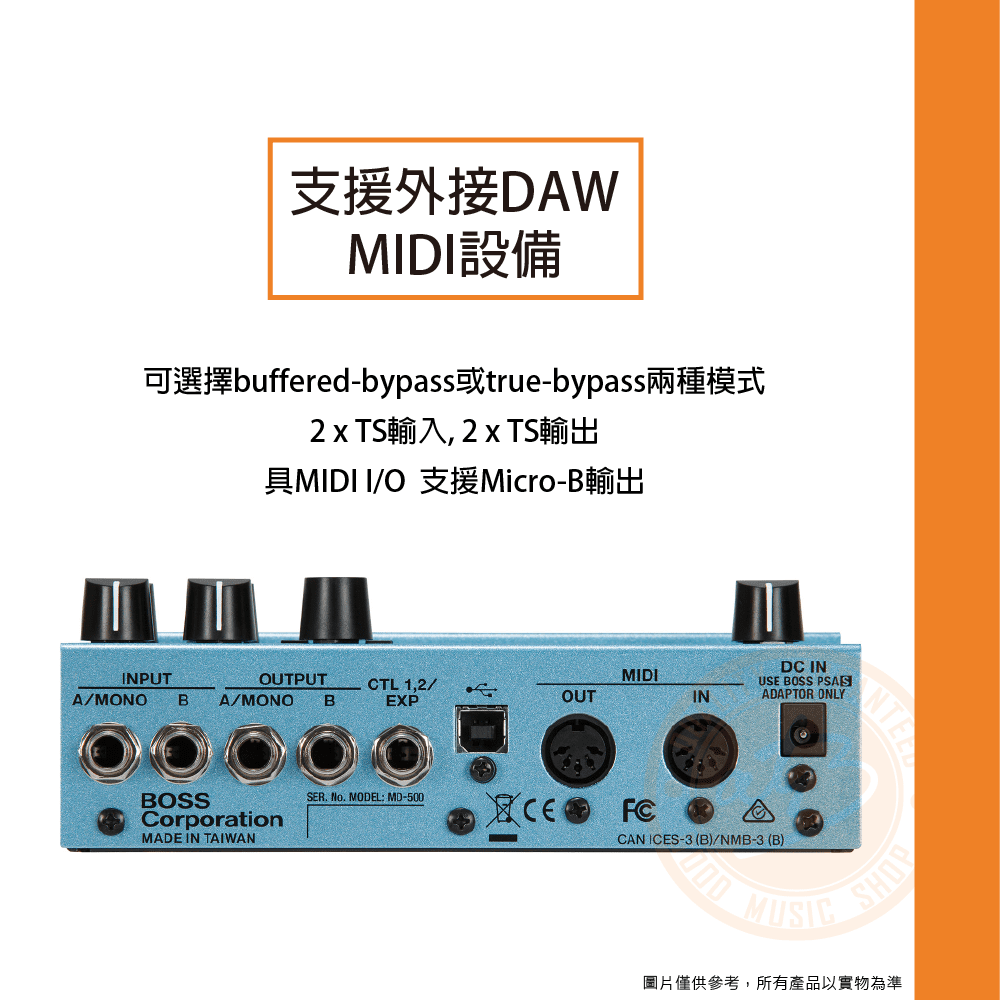 ◆ 可選擇buffered-bypass或true-bypass兩種模式,支援外接DAW、MIDI設備