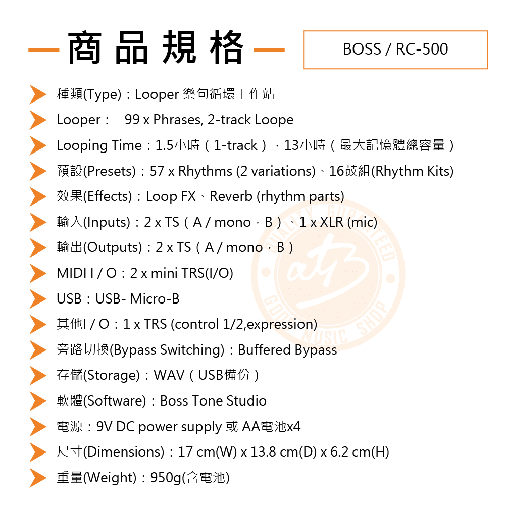 ◆ 附Boss Tone Central軟體,下載額外節奏/循環Loop