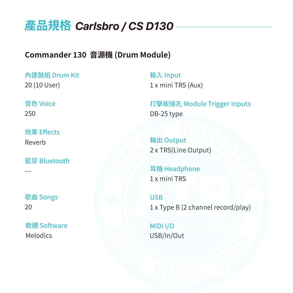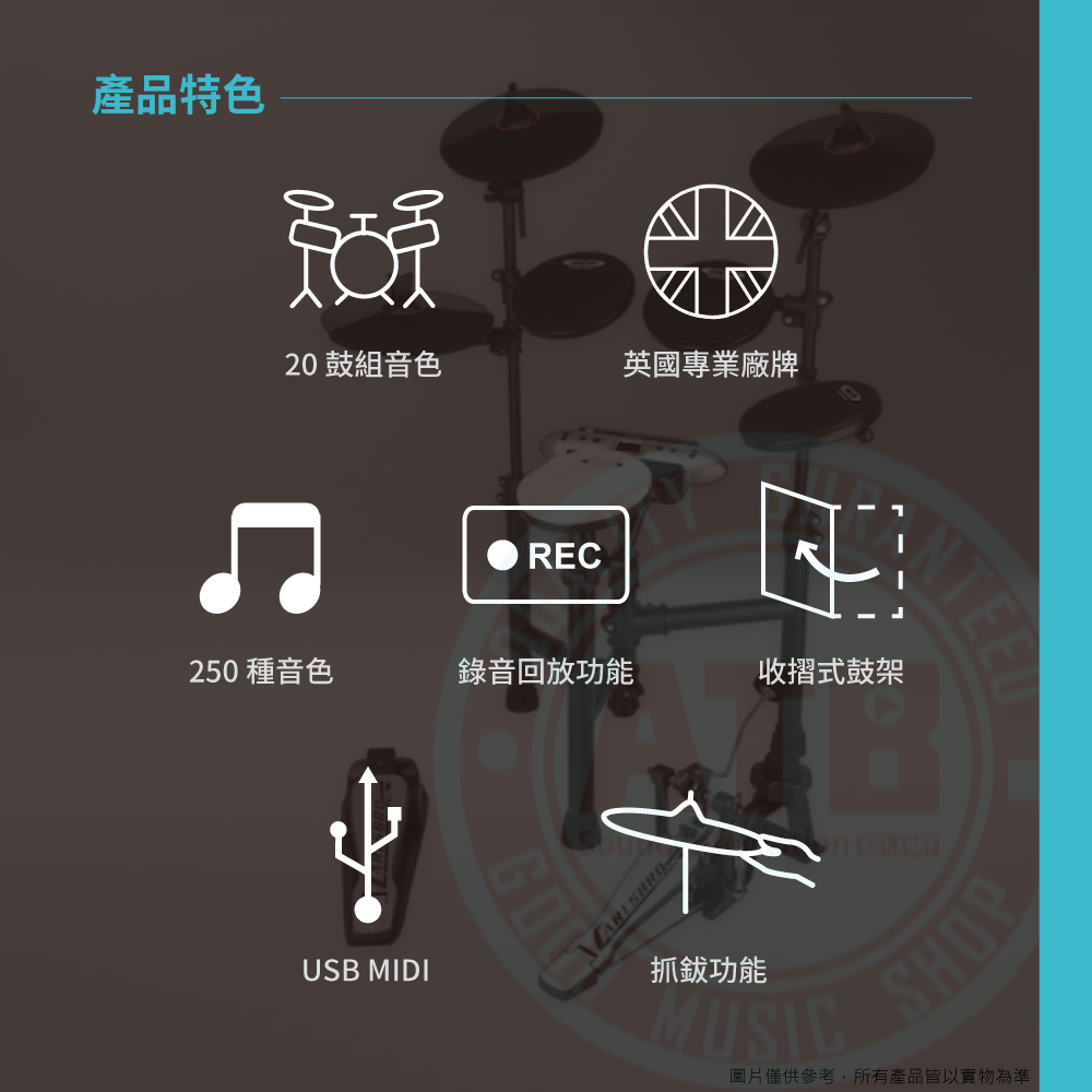 ◆內建20鼓組,20首示範曲目