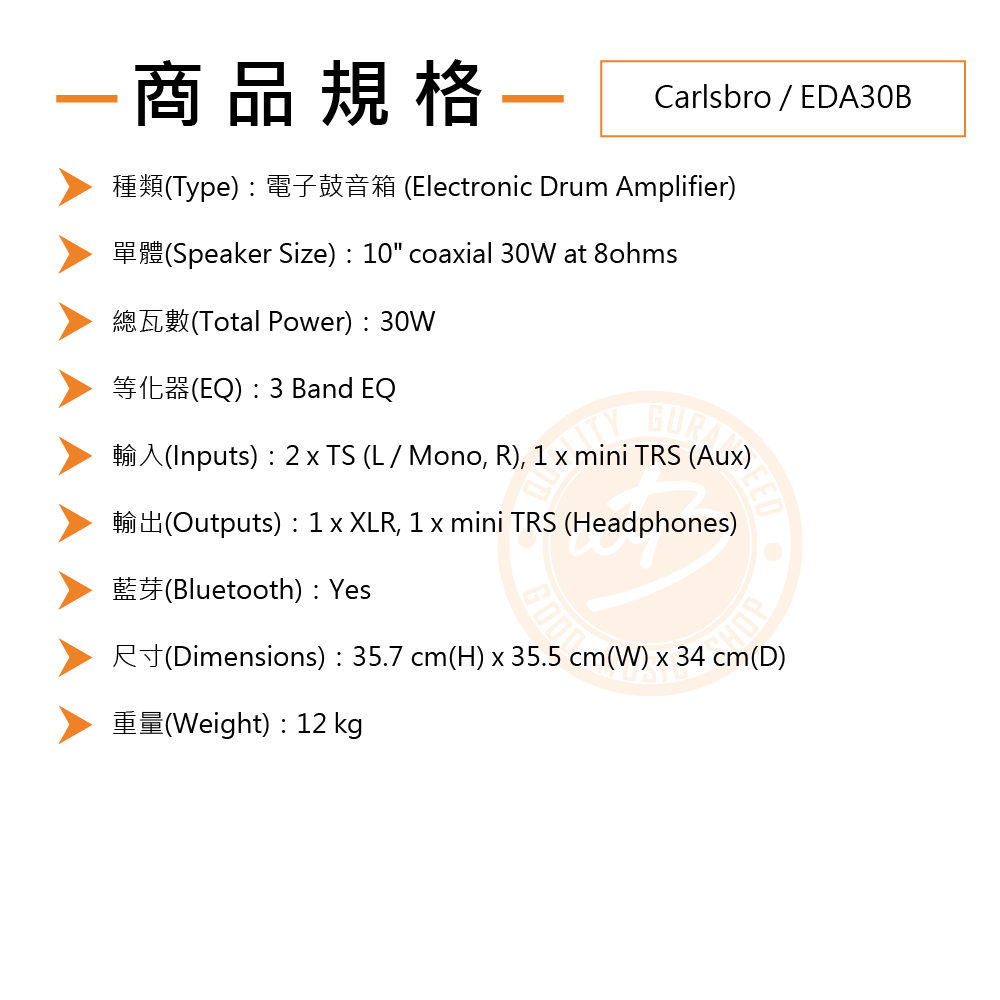 ◆ 30W電子鼓音箱,搭載10吋同軸喇叭單體